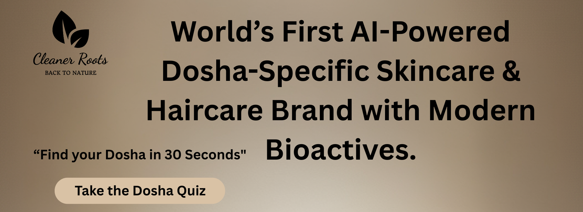 At Cleaner Roots, we’ve built the world’s first AI-powered Dosha-specific skincare and haircare system. Through a simple online analysis rooted in Ayurvedic principles, we help you discover your Dosha — Vata, Pitta, or Kapha — and craft a personalised ritual just for you. No guesswork. No influencer fads. Just clarity.
