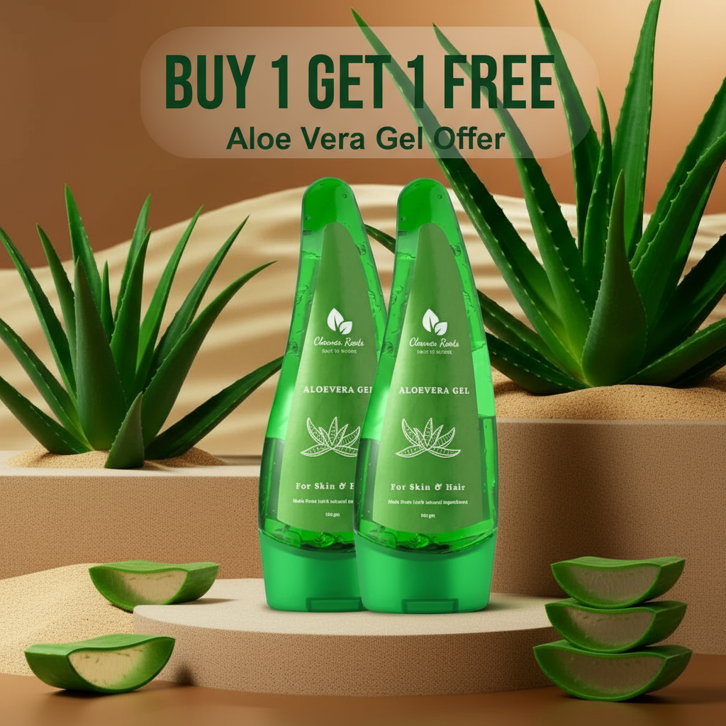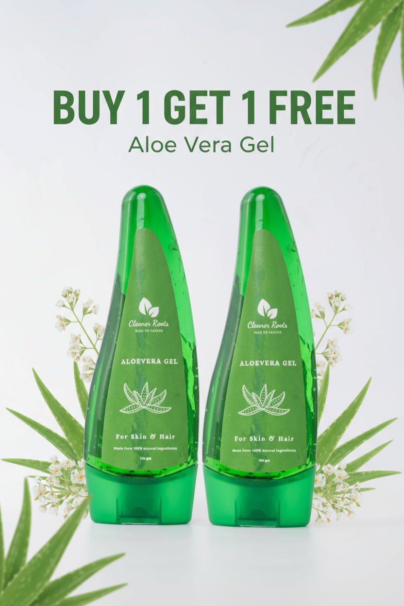 Cleaner Roots Aloe Vera Gel (Combo Pack – Buy 1 Get 1 Free) is your all-in-one skincare essential for hydration, soothing, and natural healing. Made with 100% pure Aloe Vera extract, this lightweight gel absorbs quickly, delivering instant freshness and long-lasting softness without stickiness.
