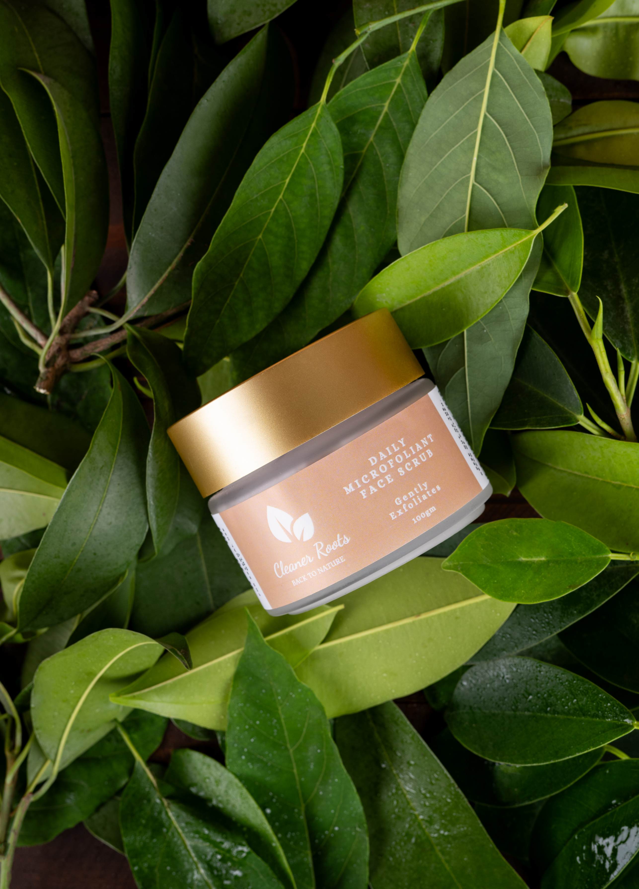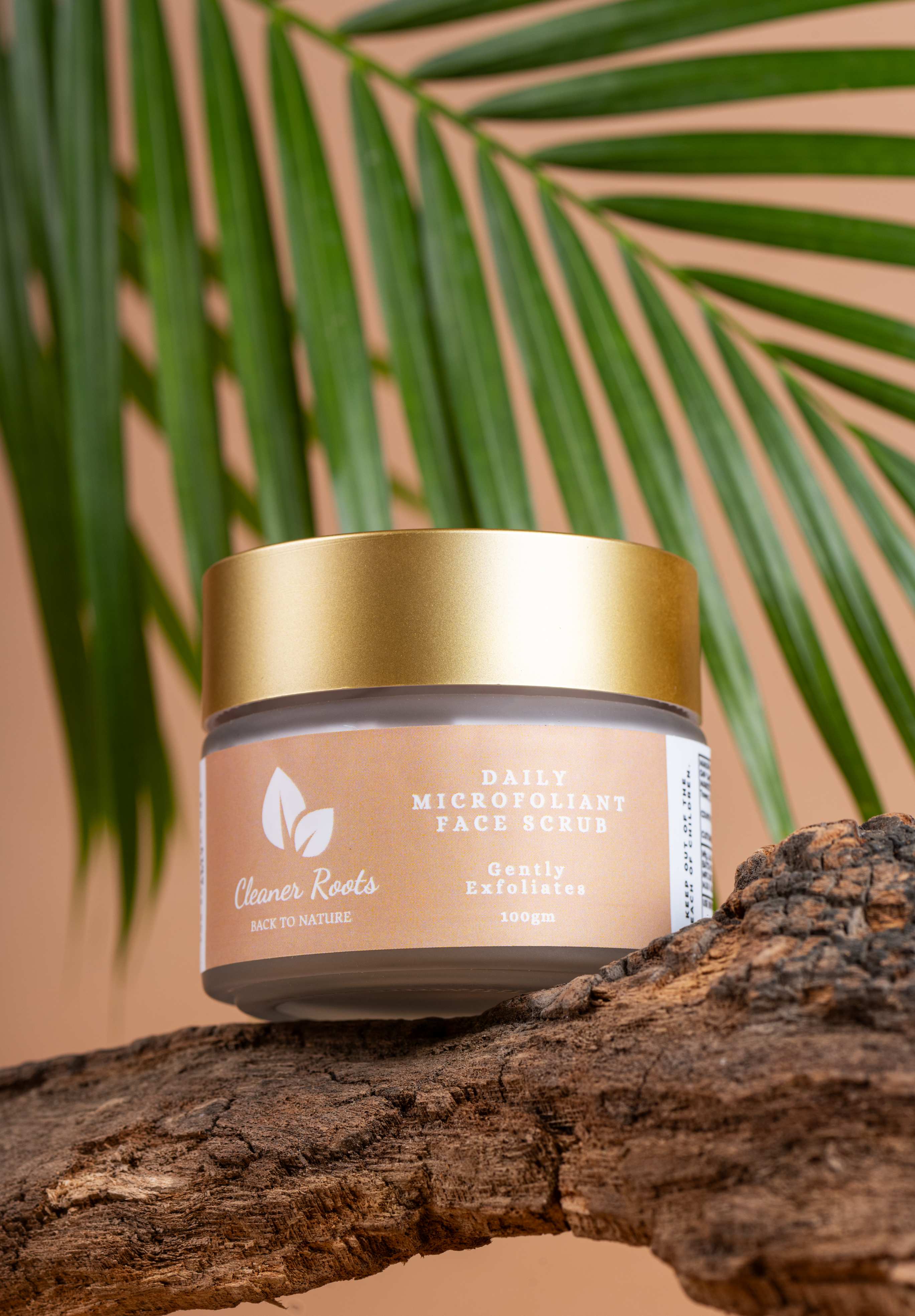 The Cleaner Roots Daily Microfoliant Face Scrub combines the best of Ayurvedic herbs and natural exfoliants to gently polish, brighten, and purify your skin every day. This unique formulation uses Akshoda (Walnut Shell Powder) for gentle exfoliation, while Manjistha, Haridra, Raktchandan, Mandukaparni, Sigru, Yashtimadhu, Aamra Haridra, and Daruharidra work together to promote even skin tone, smooth texture, and Tridosha balance.