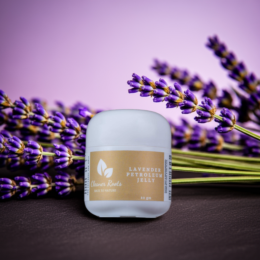 Cleaner Roots Lavender Petroleum Jelly is your go-to solution for deep hydration and skin protection. Enriched with a calming lavender fragrance, it not only soothes the senses but also brings balance to aggravated Pitta Dosha, which often manifests as redness, irritation, and sensitivity.
